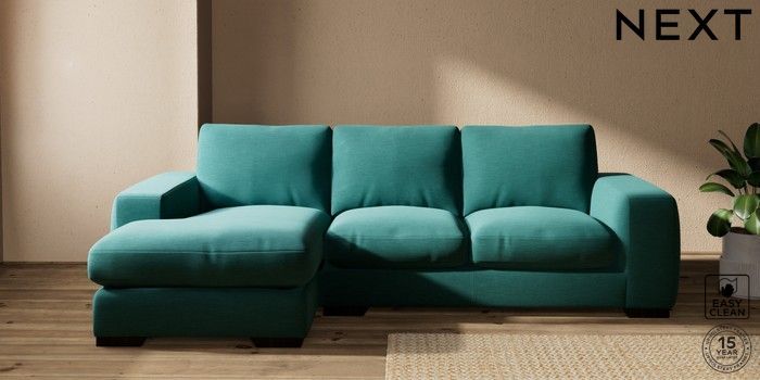 7.2.10 Houghton Deep Relaxed Sit Medium Sofa Chaise - Left Hand Fine Chenille Easy Clean Dark Juniper Green Large Square Angle - Dark | Made Click here to use our website with more accessibility support, for example screen readers