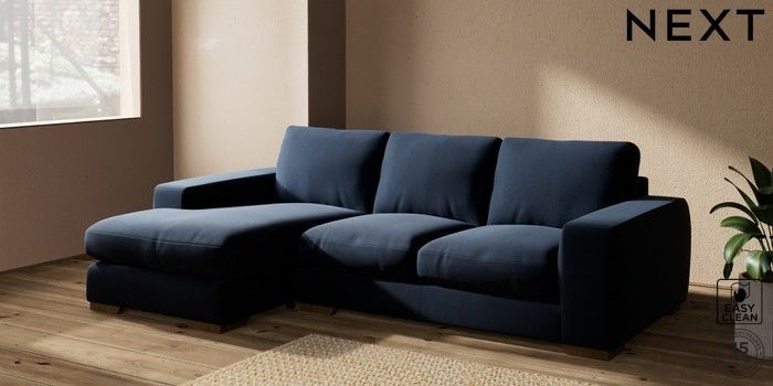 7.2.10 Houghton Deep Relaxed Sit Medium Sofa Chaise - Left Hand Fine Chenille Easy Clean Dark Navy Blue Large Square Angle - Mid | Made Click here to use our website with more accessibility support, for example screen readers