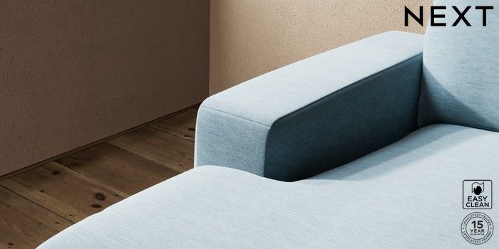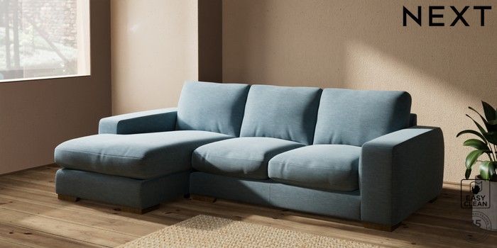 7.2.10 Houghton Deep Relaxed Sit Medium Sofa Chaise - Left Hand Fine Chenille Easy Clean Mid Blue Large Square Angle - Mid | Made Click here to use our website with more accessibility support, for example screen readers