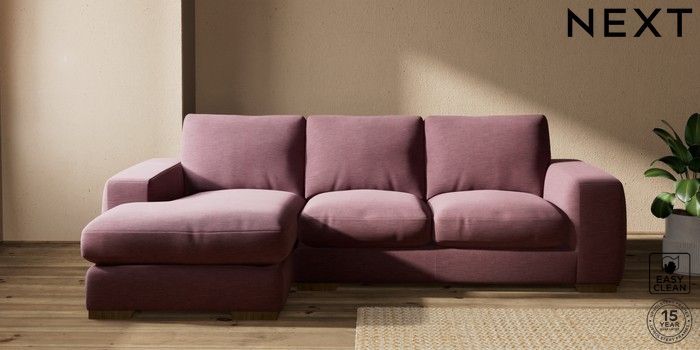 7.2.10 Houghton Deep Relaxed Sit Medium Sofa Chaise - Left Hand Fine Chenille Easy Clean Mid Mulberry Purple Large Square Angle - Mid | Made Click here to use our website with more accessibility support, for example screen readers