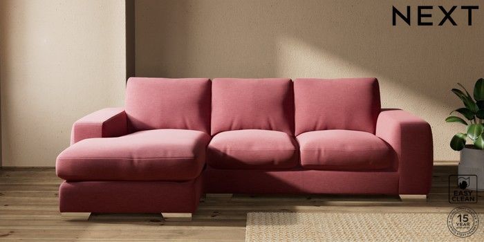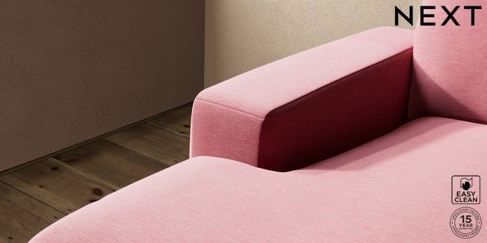 7.2.10 Houghton Deep Relaxed Sit Medium Sofa Chaise - Left Hand Fine Chenille Easy Clean Mid Pink Large Square Angle - Chrome Metal | Made Click here to use our website with more accessibility support, for example screen readers