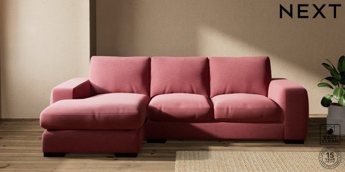 7.2.10 Houghton Deep Relaxed Sit Medium Sofa Chaise - Left Hand Fine Chenille Easy Clean Mid Pink Large Square Angle - Dark | Made Click here to use our website with more accessibility support, for example screen readers