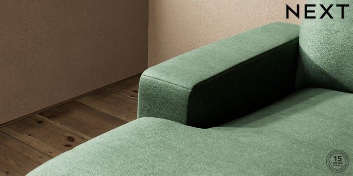 7.2.10 Houghton Deep Relaxed Sit Medium Sofa Chaise - Left Hand Luxe Chenille Dark Green Large Square Angle - Light | Made Click here to use our website with more accessibility support, for example screen readers
