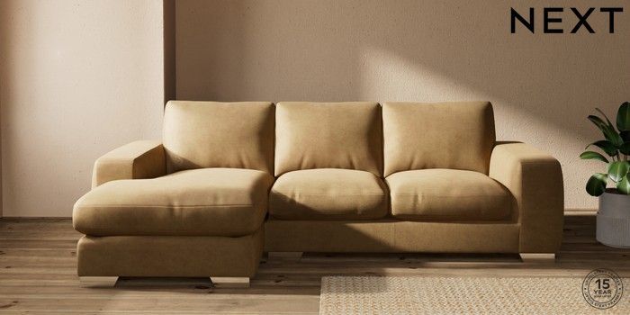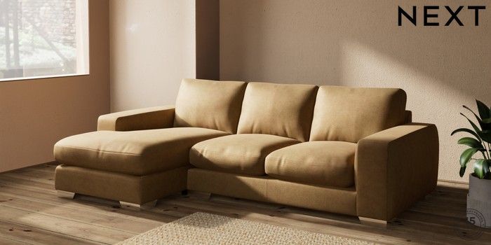 7.2.10 Houghton Deep Relaxed Sit Medium Sofa Chaise - Left Hand Luxe Chenille Honey Yellow Large Square Angle - Chrome Metal | Made Click here to use our website with more accessibility support, for example screen readers