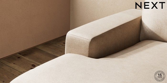 7.2.10 Houghton Deep Relaxed Sit Medium Sofa Chaise - Left Hand Luxe Chenille Mid Camel Beige Large Square Angle - Brushed Brass | Made Click here to use our website with more accessibility support, for example screen readers