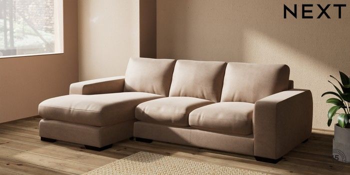 7.2.10 Houghton Deep Relaxed Sit Medium Sofa Chaise - Left Hand Luxe Chenille Mid Natural Large Square Angle - Dark | Made Click here to use our website with more accessibility support, for example screen readers
