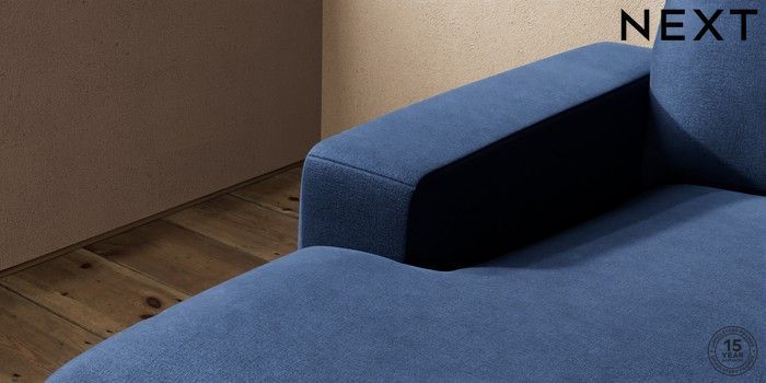 7.2.10 Houghton Deep Relaxed Sit Medium Sofa Chaise - Left Hand Luxe Chenille Navy Blue Large Square Angle - Brushed Brass | Made Click here to use our website with more accessibility support, for example screen readers