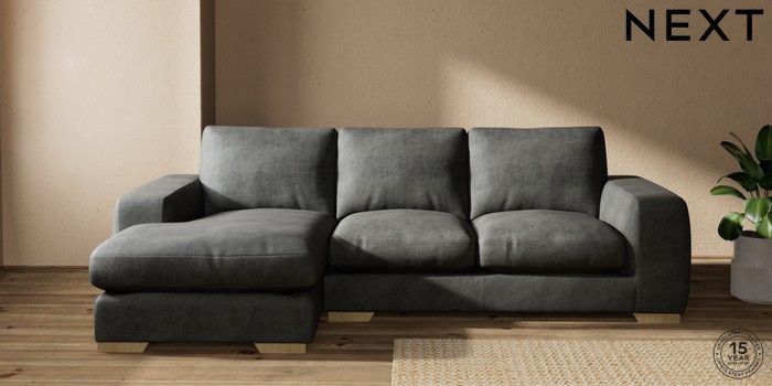 7.2.10 Houghton Deep Relaxed Sit Medium Sofa Chaise - Left Hand Monza Faux Leather Easy Clean Dark Grey Large Square Angle - Light | Made Click here to use our website with more accessibility support, for example screen readers
