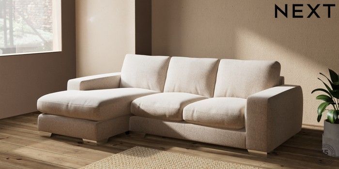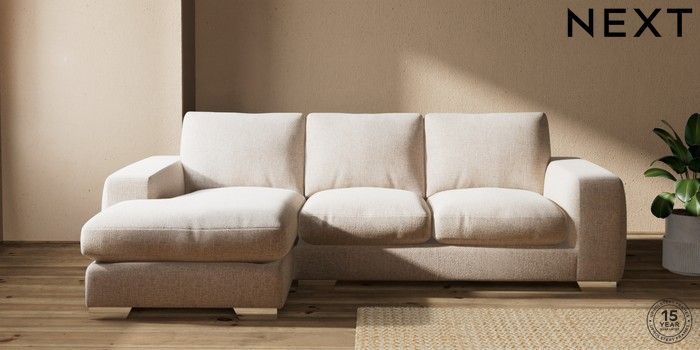 7.2.10 Houghton Deep Relaxed Sit Medium Sofa Chaise - Left Hand Multi Weave Mid Natural Large Square Angle - Chrome Metal | Made Click here to use our website with more accessibility support, for example screen readers