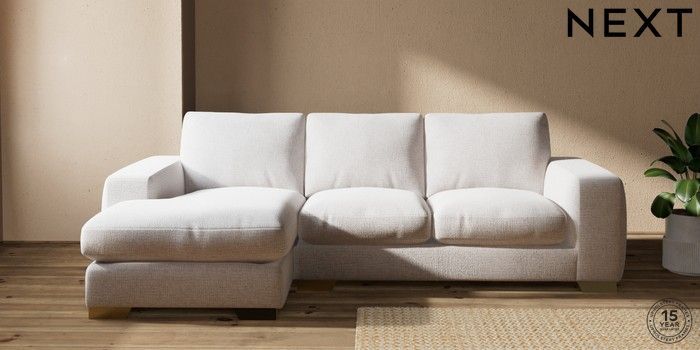 7.2.10 Houghton Deep Relaxed Sit Medium Sofa Chaise - Left Hand Multi Weave Oyster Large Square Angle - Brushed Brass | Made Click here to use our website with more accessibility support, for example screen readers