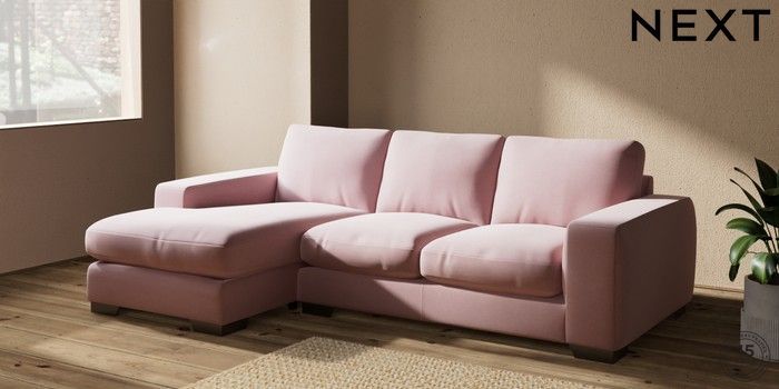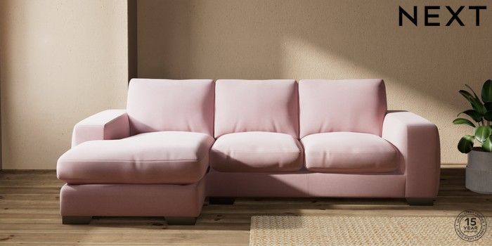 7.2.10 Houghton Deep Relaxed Sit Medium Sofa Chaise - Left Hand Natural Mix Light Rose Pink Large Square Angle - Gunmetal | Made Click here to use our website with more accessibility support, for example screen readers
