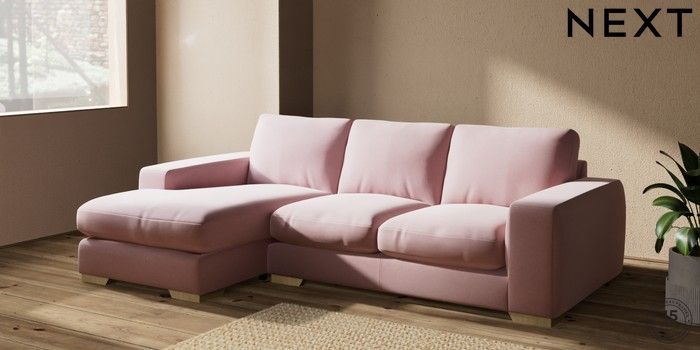 7.2.10 Houghton Deep Relaxed Sit Medium Sofa Chaise - Left Hand Natural Mix Light Rose Pink Large Square Angle - Light | Made Click here to use our website with more accessibility support, for example screen readers