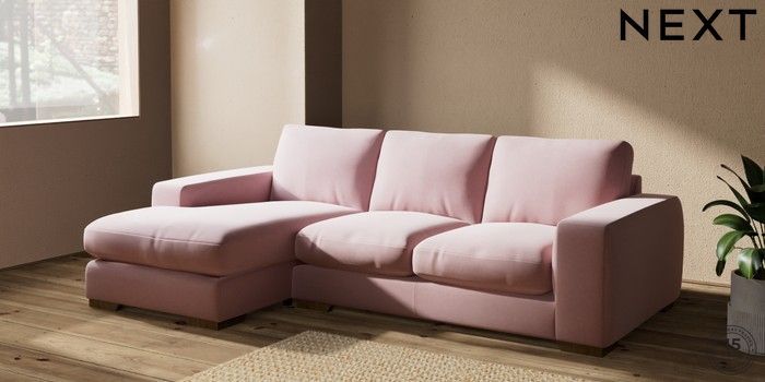 7.2.10 Houghton Deep Relaxed Sit Medium Sofa Chaise - Left Hand Natural Mix Light Rose Pink Large Square Angle - Mid | Made Click here to use our website with more accessibility support, for example screen readers