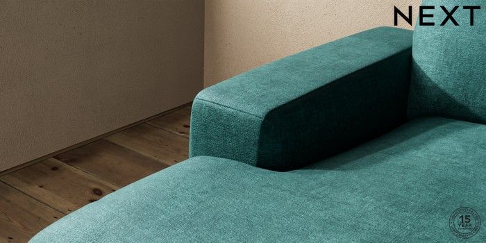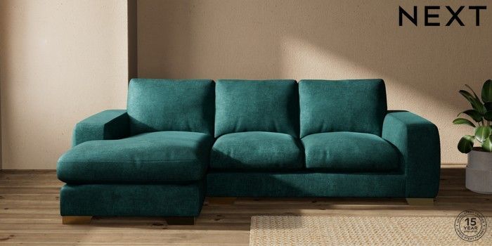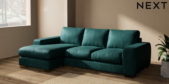7.2.10 Houghton Deep Relaxed Sit Medium Sofa Chaise - Left Hand Plush Chenille Dark Teal Green Large Square Angle - Brushed Brass | Made Click here to use our website with more accessibility support, for example screen readers