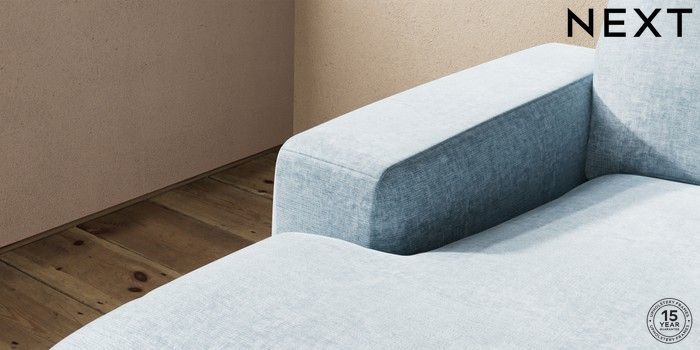 7.2.10 Houghton Deep Relaxed Sit Medium Sofa Chaise - Left Hand Plush Chenille Light Blue Large Square Angle - Light | Made Click here to use our website with more accessibility support, for example screen readers