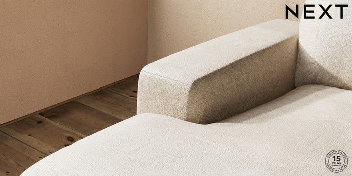 7.2.10 Houghton Deep Relaxed Sit Medium Sofa Chaise - Left Hand Plush Chenille Light Natural Large Square Angle - Chrome Metal | Made Click here to use our website with more accessibility support, for example screen readers