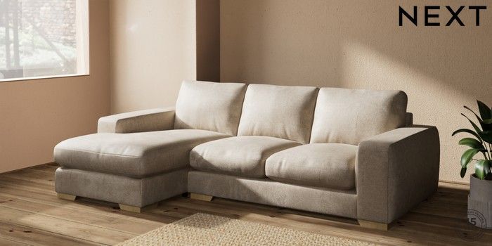 7.2.10 Houghton Deep Relaxed Sit Medium Sofa Chaise - Left Hand Plush Chenille Light Natural Large Square Angle - Light | Made Click here to use our website with more accessibility support, for example screen readers