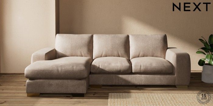 7.2.10 Houghton Deep Relaxed Sit Medium Sofa Chaise - Left Hand Plush Chenille Mid Natural Large Square Angle - Brushed Brass | Made Click here to use our website with more accessibility support, for example screen readers