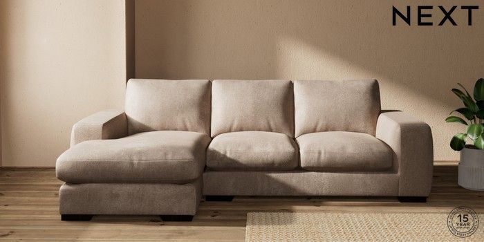 7.2.10 Houghton Deep Relaxed Sit Medium Sofa Chaise - Left Hand Plush Chenille Mid Natural Large Square Angle - Dark | Made Click here to use our website with more accessibility support, for example screen readers