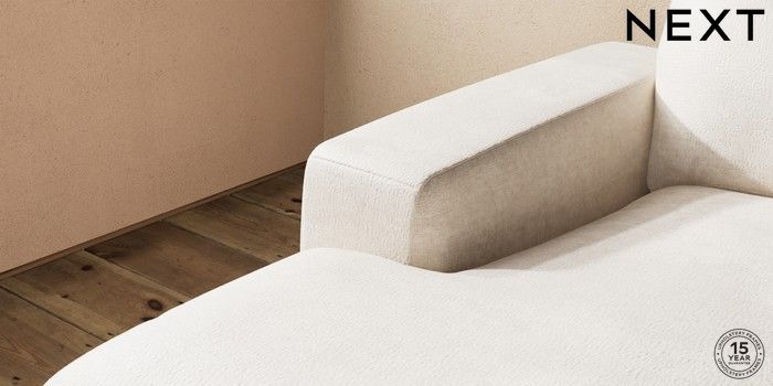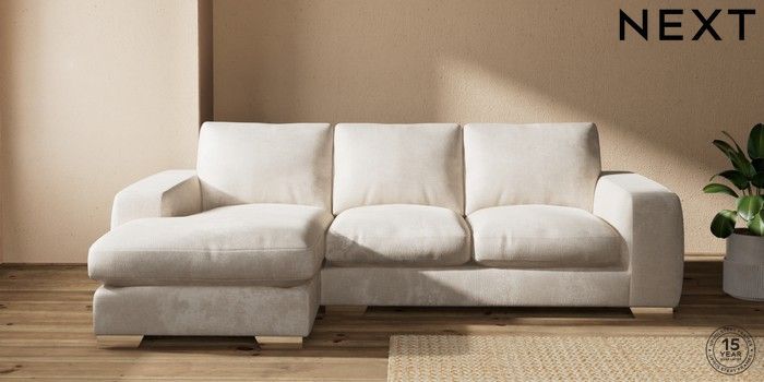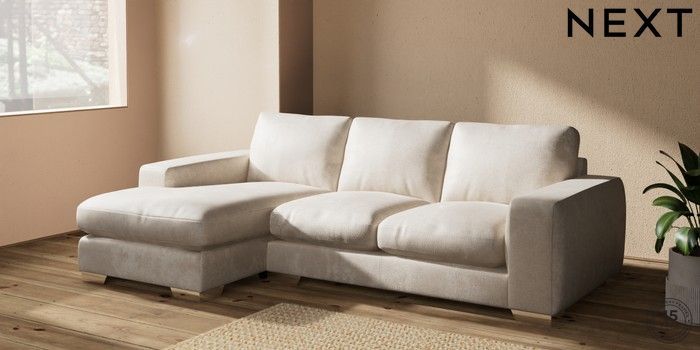 7.2.10 Houghton Deep Relaxed Sit Medium Sofa Chaise - Left Hand Plush Chenille Oyster Large Square Angle - Chrome Metal | Made Click here to use our website with more accessibility support, for example screen readers