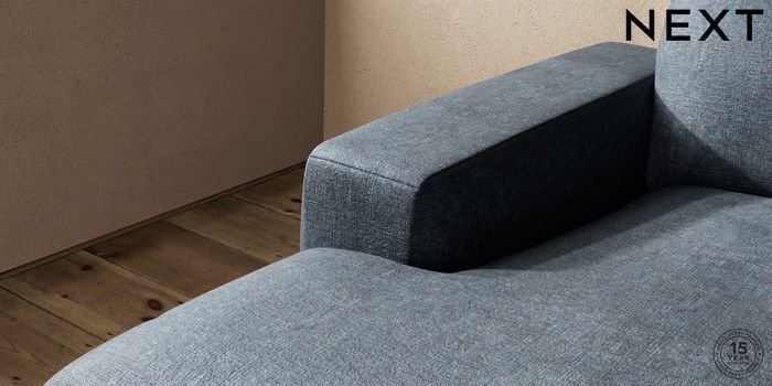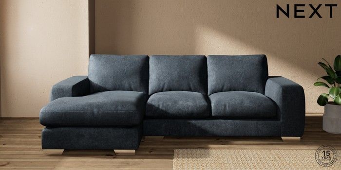 7.2.10 Houghton Deep Relaxed Sit Medium Sofa Chaise - Left Hand Plush Chenille Slate Blue Large Square Angle - Chrome Metal | Made Click here to use our website with more accessibility support, for example screen readers