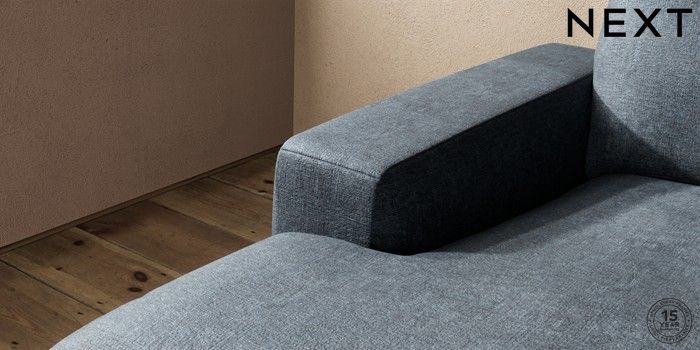 7.2.10 Houghton Deep Relaxed Sit Medium Sofa Chaise - Left Hand Plush Chenille Slate Blue Large Square Angle - Dark | Made Click here to use our website with more accessibility support, for example screen readers