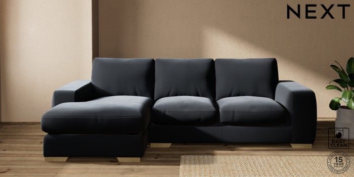 7.2.10 Houghton Deep Relaxed Sit Medium Sofa Chaise - Left Hand Plush Velvet Easy Clean Charcoal Grey Large Square Angle - Light | Made Click here to use our website with more accessibility support, for example screen readers