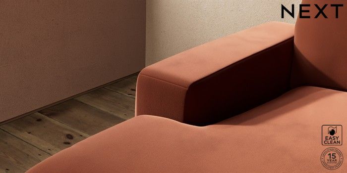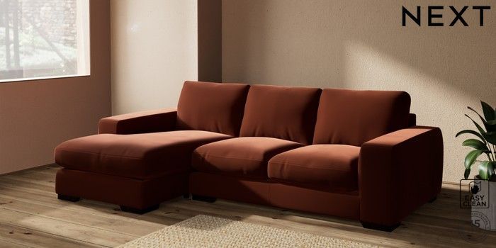 7.2.10 Houghton Deep Relaxed Sit Medium Sofa Chaise - Left Hand Plush Velvet Easy Clean Ginger Orange Large Square Angle - Dark | Made Click here to use our website with more accessibility support, for example screen readers