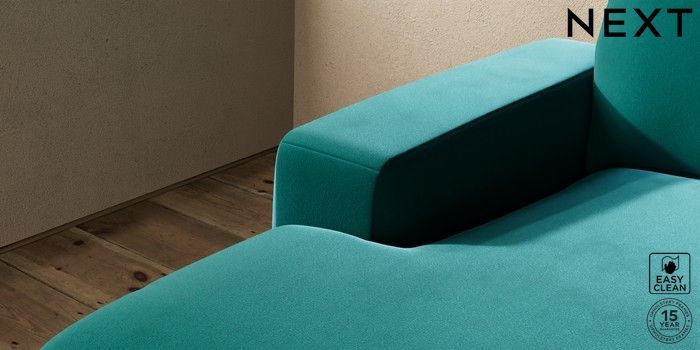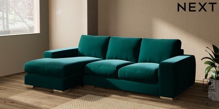 7.2.10 Houghton Deep Relaxed Sit Medium Sofa Chaise - Left Hand Plush Velvet Easy Clean Juniper Green Large Square Angle - Chrome Metal | Made Click here to use our website with more accessibility support, for example screen readers