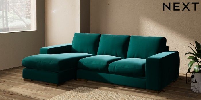 7.2.10 Houghton Deep Relaxed Sit Medium Sofa Chaise - Left Hand Plush Velvet Easy Clean Juniper Green Large Square Angle - Mid | Made Click here to use our website with more accessibility support, for example screen readers