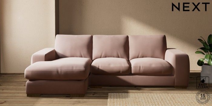 7.2.10 Houghton Deep Relaxed Sit Medium Sofa Chaise - Left Hand Plush Velvet Easy Clean Mid Natural Large Square Angle - Mid | Made Click here to use our website with more accessibility support, for example screen readers