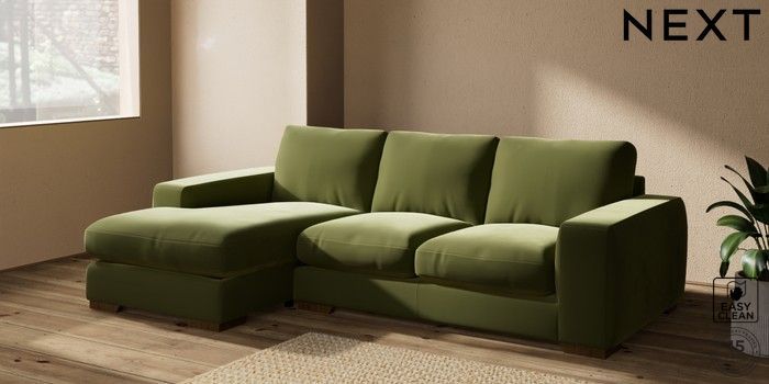 7.2.10 Houghton Deep Relaxed Sit Medium Sofa Chaise - Left Hand Plush Velvet Easy Clean Mid Olive Green Large Square Angle - Mid | Made Click here to use our website with more accessibility support, for example screen readers
