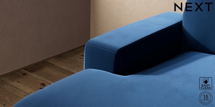 7.2.10 Houghton Deep Relaxed Sit Medium Sofa Chaise - Left Hand Plush Velvet Easy Clean Navy Blue Large Square Angle - Brushed Brass | Made Click here to use our website with more accessibility support, for example screen readers