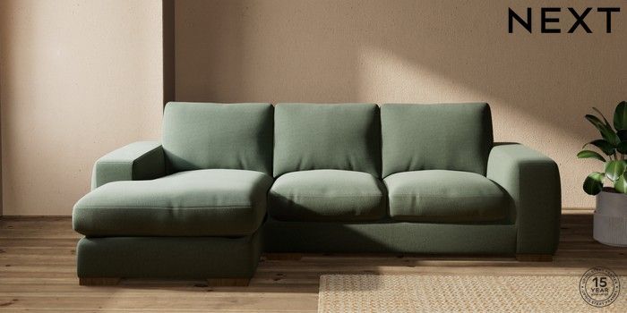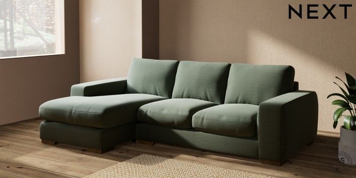 7.2.10 Houghton Deep Relaxed Sit Medium Sofa Chaise - Left Hand Relaxed Linen Look Dark Green Large Square Angle - Mid | Made Click here to use our website with more accessibility support, for example screen readers