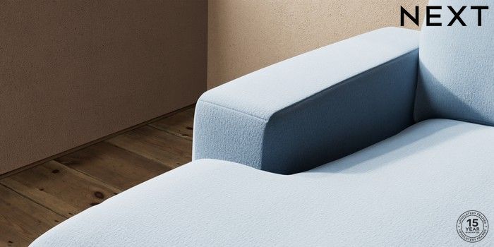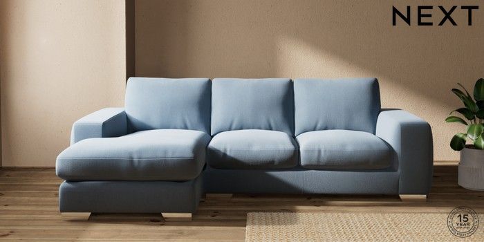 7.2.10 Houghton Deep Relaxed Sit Medium Sofa Chaise - Left Hand Relaxed Linen Look Mid Blue Large Square Angle - Chrome Metal | Made Click here to use our website with more accessibility support, for example screen readers