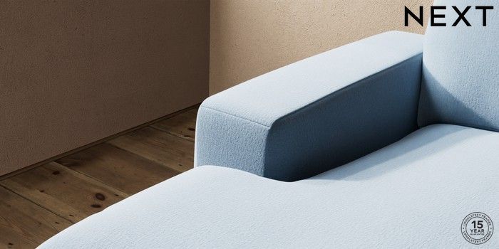 7.2.10 Houghton Deep Relaxed Sit Medium Sofa Chaise - Left Hand Relaxed Linen Look Mid Blue Large Square Angle - Light | Made Click here to use our website with more accessibility support, for example screen readers