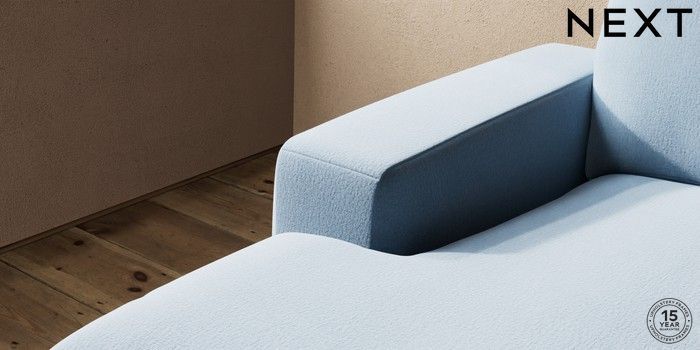 7.2.10 Houghton Deep Relaxed Sit Medium Sofa Chaise - Left Hand Relaxed Linen Look Mid Blue Large Square Angle - Mid | Made Click here to use our website with more accessibility support, for example screen readers