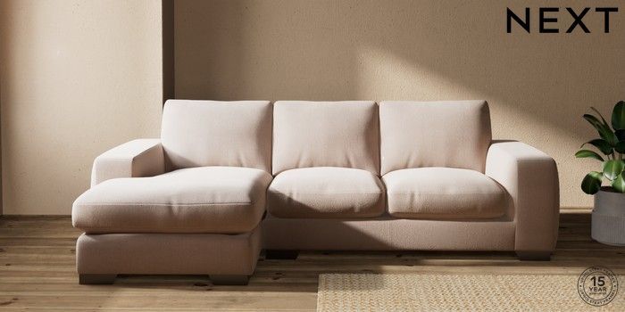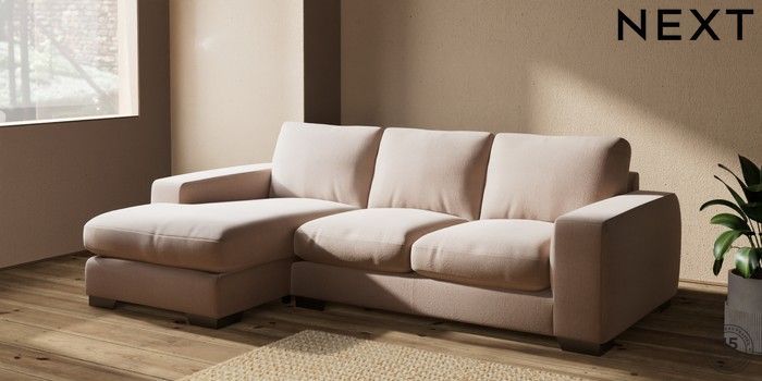 7.2.10 Houghton Deep Relaxed Sit Medium Sofa Chaise - Left Hand Relaxed Linen Look Mid Natural Large Square Angle - Gunmetal | Made Click here to use our website with more accessibility support, for example screen readers