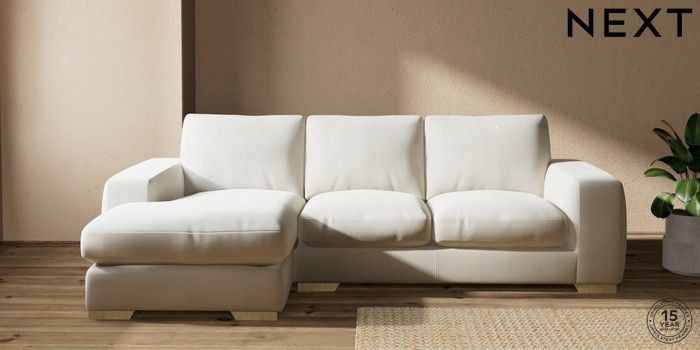 7.2.10 Houghton Deep Relaxed Sit Medium Sofa Chaise - Left Hand Relaxed Linen Look Oyster Large Square Angle - Light | Made Click here to use our website with more accessibility support, for example screen readers