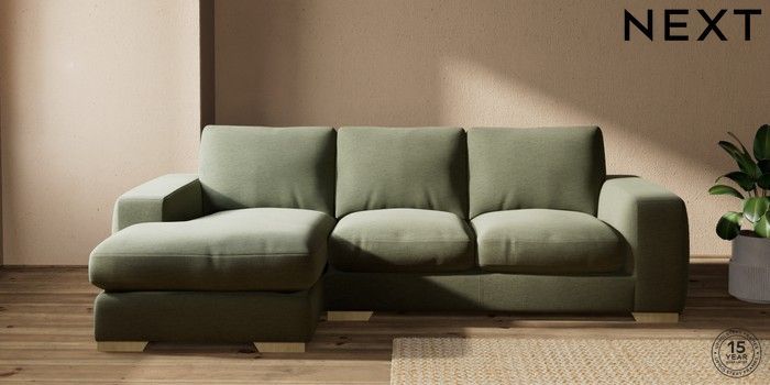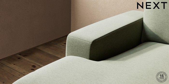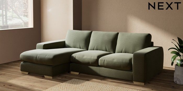 7.2.10 Houghton Deep Relaxed Sit Medium Sofa Chaise - Left Hand Ripple Chenille Mid Moss Green Large Square Angle - Light | Made Click here to use our website with more accessibility support, for example screen readers