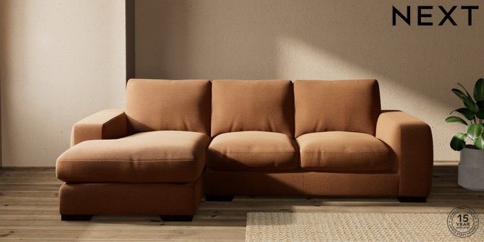 7.2.10 Houghton Deep Relaxed Sit Medium Sofa Chaise - Left Hand Ripple Chenille Mid Rust Brown Large Square Angle - Dark | Made Click here to use our website with more accessibility support, for example screen readers