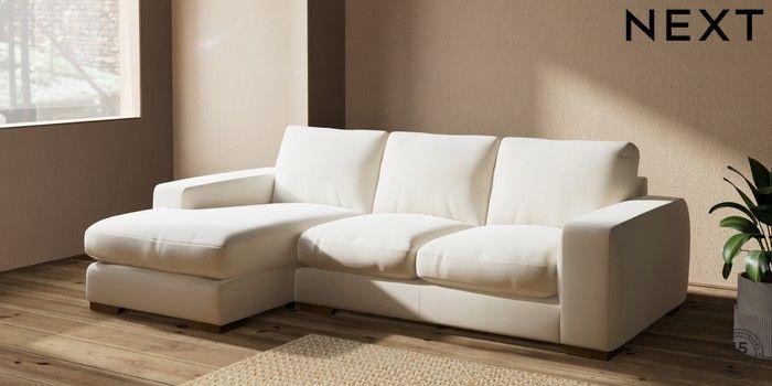 7.2.10 Houghton Deep Relaxed Sit Medium Sofa Chaise - Left Hand Ripple Chenille Oyster Large Square Angle - Mid | Made Click here to use our website with more accessibility support, for example screen readers