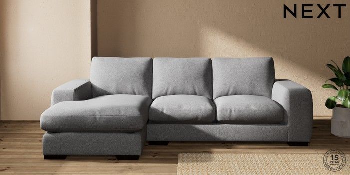 7.2.10 Houghton Deep Relaxed Sit Medium Sofa Chaise - Left Hand Studio Chenille Mid Grey Large Square Angle - Dark | Made Click here to use our website with more accessibility support, for example screen readers