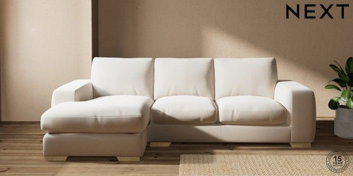7.2.10 Houghton Deep Relaxed Sit Medium Sofa Chaise - Left Hand Studio Chenille Oyster Large Square Angle - Light | Made Click here to use our website with more accessibility support, for example screen readers