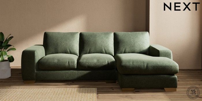 7.2.10 Houghton Deep Relaxed Sit Medium Sofa Chaise - Right Hand Boucle Chenille Dark Moss Green Large Square Angle - Brushed Brass | Made Click here to use our website with more accessibility support, for example screen readers