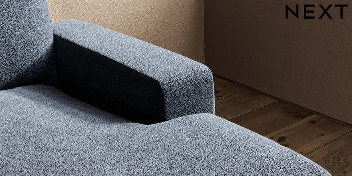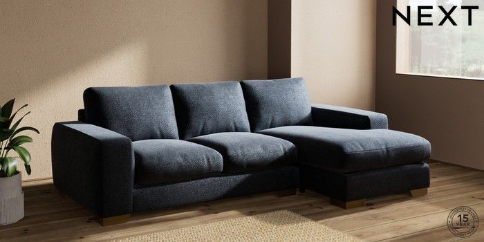 7.2.10 Houghton Deep Relaxed Sit Medium Sofa Chaise - Right Hand Boucle Chenille Dark Slate Blue Large Square Angle - Brushed Brass | Made Click here to use our website with more accessibility support, for example screen readers