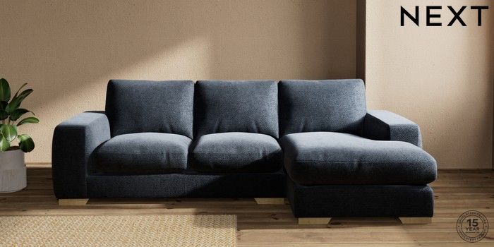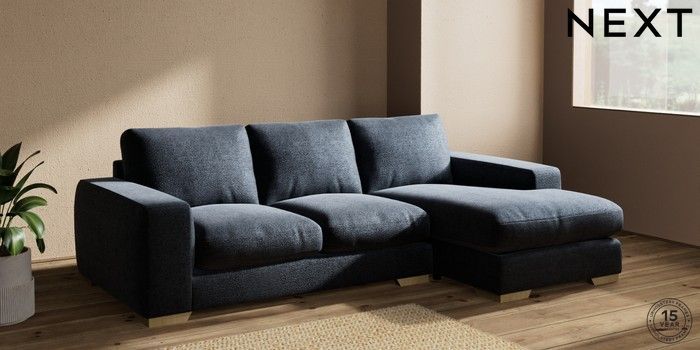 7.2.10 Houghton Deep Relaxed Sit Medium Sofa Chaise - Right Hand Boucle Chenille Dark Slate Blue Large Square Angle - Light | Made Click here to use our website with more accessibility support, for example screen readers