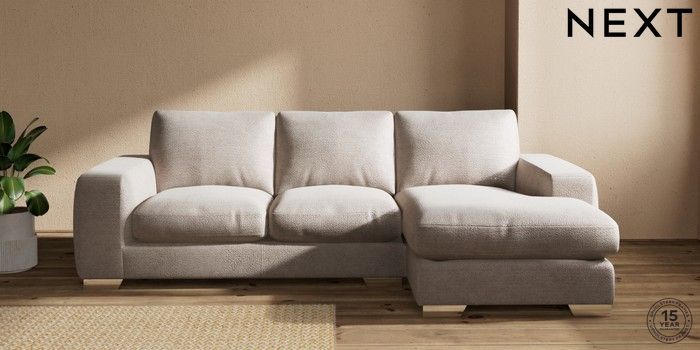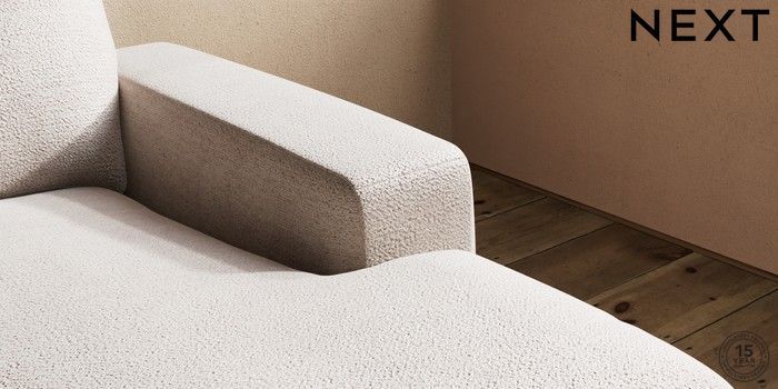 7.2.10 Houghton Deep Relaxed Sit Medium Sofa Chaise - Right Hand Boucle Chenille Light Natural Large Square Angle - Chrome Metal | Made Click here to use our website with more accessibility support, for example screen readers
