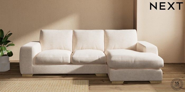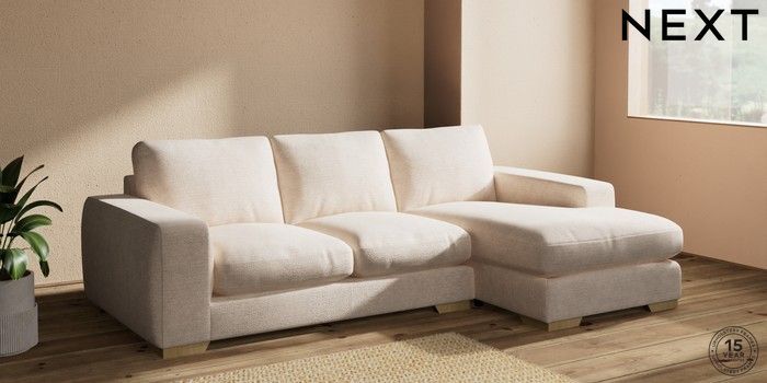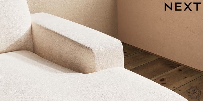 7.2.10 Houghton Deep Relaxed Sit Medium Sofa Chaise - Right Hand Boucle Chenille Oyster Large Square Angle - Light | Made Click here to use our website with more accessibility support, for example screen readers