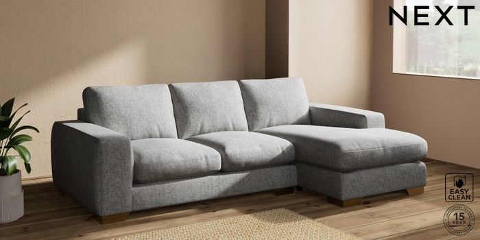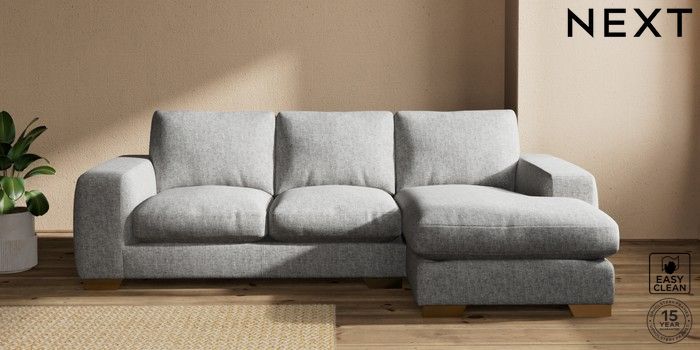 7.2.10 Houghton Deep Relaxed Sit Medium Sofa Chaise - Right Hand Chunky Boucle Easy Clean Light Grey Large Square Angle - Brushed Brass | Made Click here to use our website with more accessibility support, for example screen readers